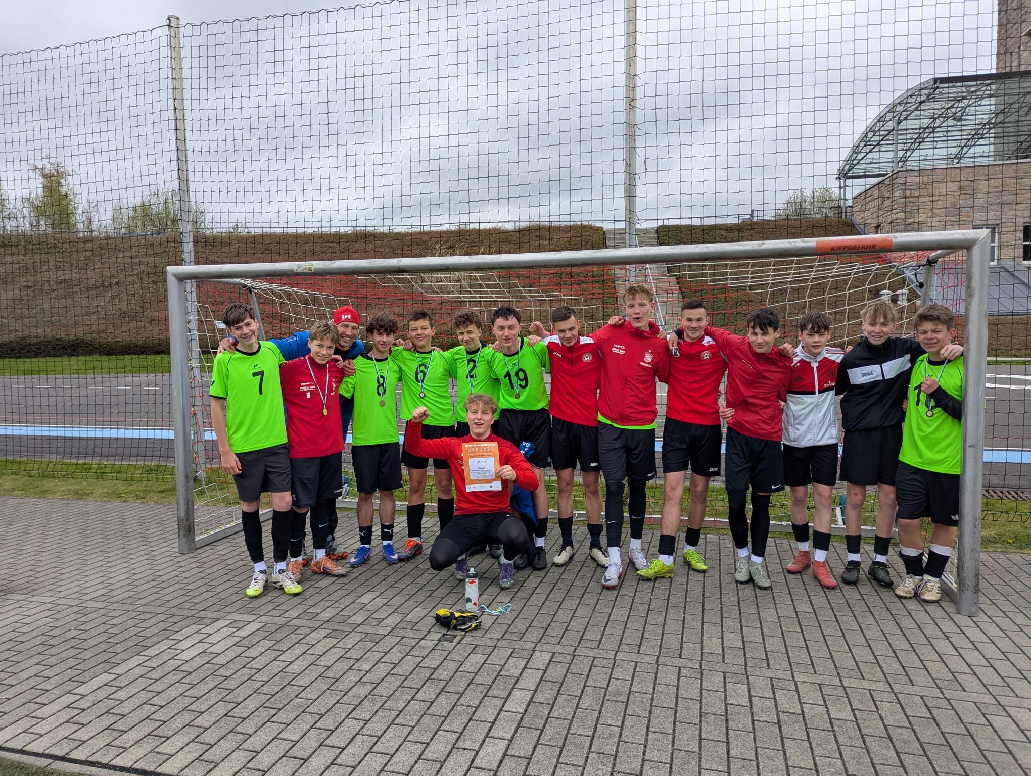 Mit drei überzeugenden Spielen sicherten sich die Mädchen den 1. Platz und damit die Qualifikation für das Landesfinale am 27. Mai in Freital. Bereits im ersten Spiel setzte das Team mit einem deutlichen 12:0 gegen Markneukirchen ein klares Zeichen. Auch in den folgenden Begegnungen gegen Lichtenstein (3:1) und Gersdorf (3:1) überzeugten die Spielerinnen mit einer geschlossenen Mannschaftsleistung. Am Ende stand ein verdienter Turniersieg – entsprechend groß war die Freude über den Einzug ins Landesfinale.
